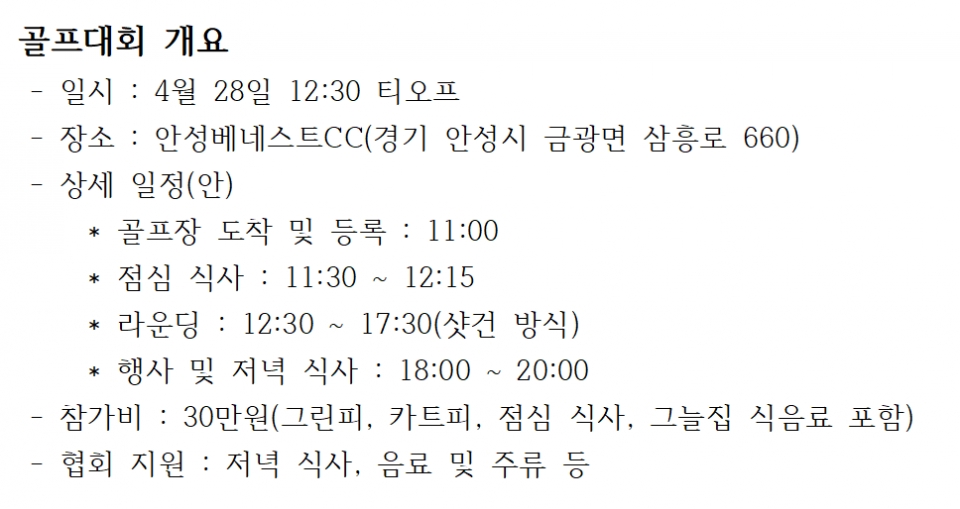 사무국 차원에서도 주요 지역 회원사 방문과 함께 지역 동호회 행사에도 참여해 골프대회 참가를 적극 요청할 계획이다.