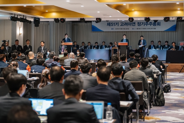 28일 오전 11시 30분경 서울 용산구 몬드리안 호텔에서 제 51기 고려아연 정기주주총회가 개최됐다. 예정시간보다 약 2시간30분이 지연된 가운데, 박기덕 고려아연 사장이 정기주총 의장직을 맡아 총회를 진행했다.