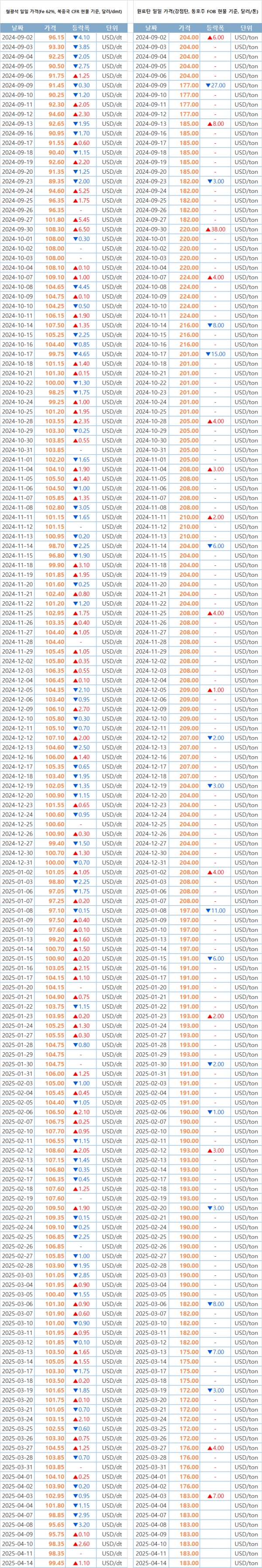 [표] 일일 철강 원료 가격 동향(4월 14일)