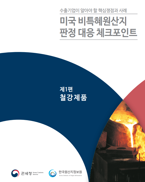 관세청은 대미 수출기업이 미국의 관세정책 변화에 실질적인 대응 방안을 모색할 수 있도록 「미국 비특혜원산지 판정 대응 체크포인트 제1편 - 철강제품」을 발간하고 관세청 누리집을 통해 배포했다. 배포된 자료는 일반적인 제도 설명만으로 이해가 쉽지 않은 ‘비특혜원산지 기준’을 실제 판정 사례를 중심으로 상세하게 설명하고 있어 직관적으로 이해할 수 있도록 돕고 있다.