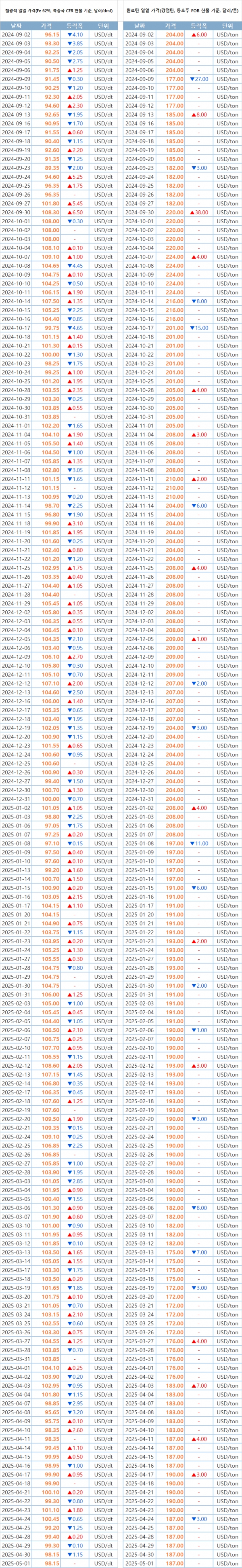[표] 일일 철강 원료 가격 동향(5월 1일)