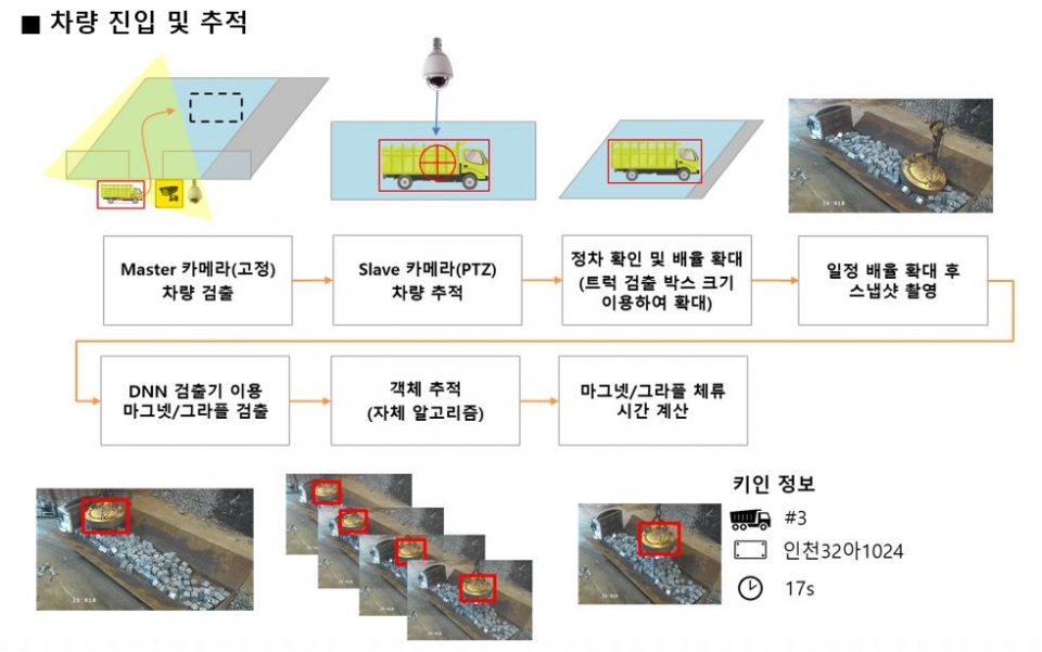 우선 범용 AI 시스템은 현장 변화에 유연하게 대응할 수 있도록 설계된 시스템이다. 예를 들어 입고된 철스크랩 차량의 정차 위치나 각도가 매번 달라도 AI 카메라가 차량을 추적하면서 인식할 수 있고, 이동하는 철스크랩이나 크레인도 실시간으로 추적 분석한다.