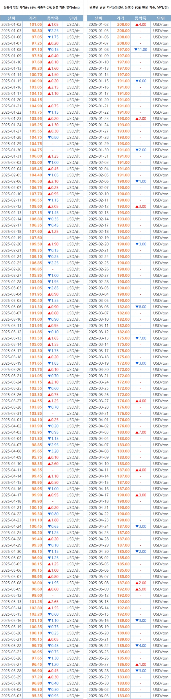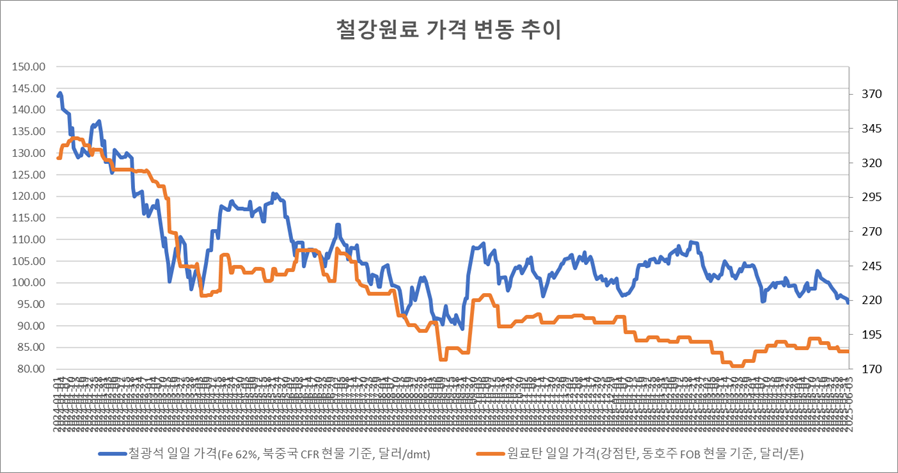 키워드 #철광석 #원료탄 이사무엘 기자 smlee@snmnews.com 다른 기사 보기 관련기사 반덤핑 예비판정 앞두고…열연강판 시장 정상화 ‘기류’ 한화오션, 초대형 암모니아운반선 개발 등 친환경 기술 개발 박차 마이스틸 “6월 중국 철강價 하락 지속” [이슈] “10년 만의 최대 수입”…수입 열연, ‘반덤핑 전 마지막 공세?’ [표] 5월 중후판 수출입 저작권자 © 철강금속신문 무단전재 및 재배포 금지