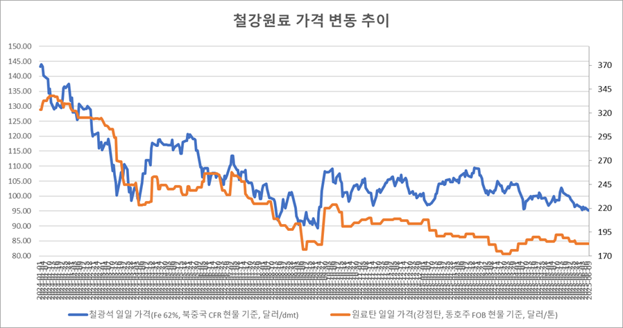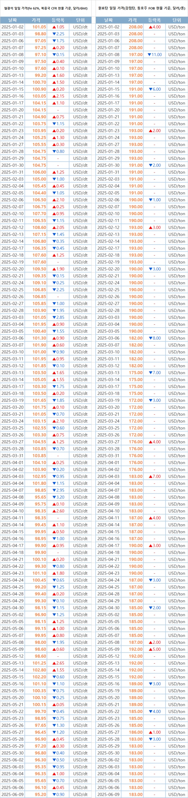 [표] 일일 철강 원료 가격 동향(6월 9일)