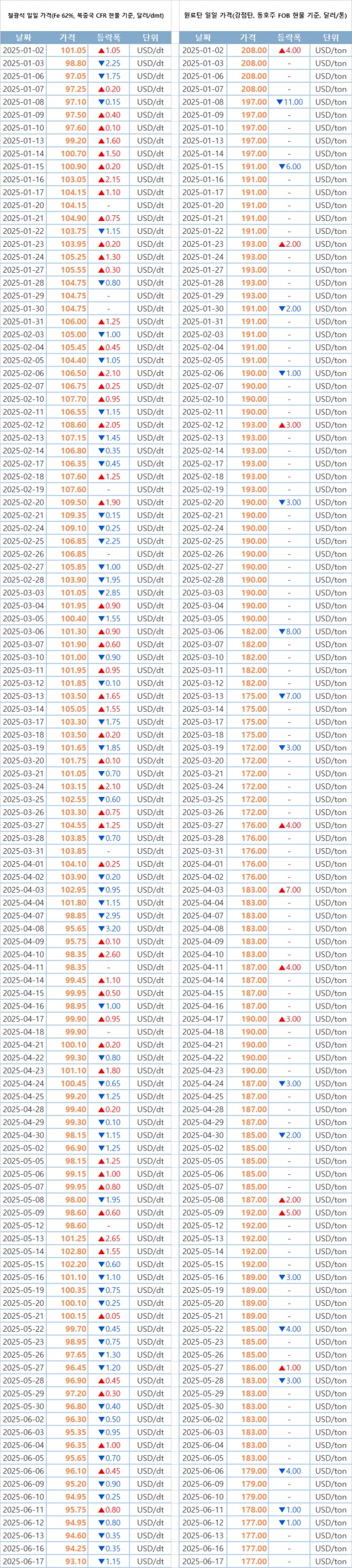 [표] 일일 철강 원료 가격 동향(6월 17일)