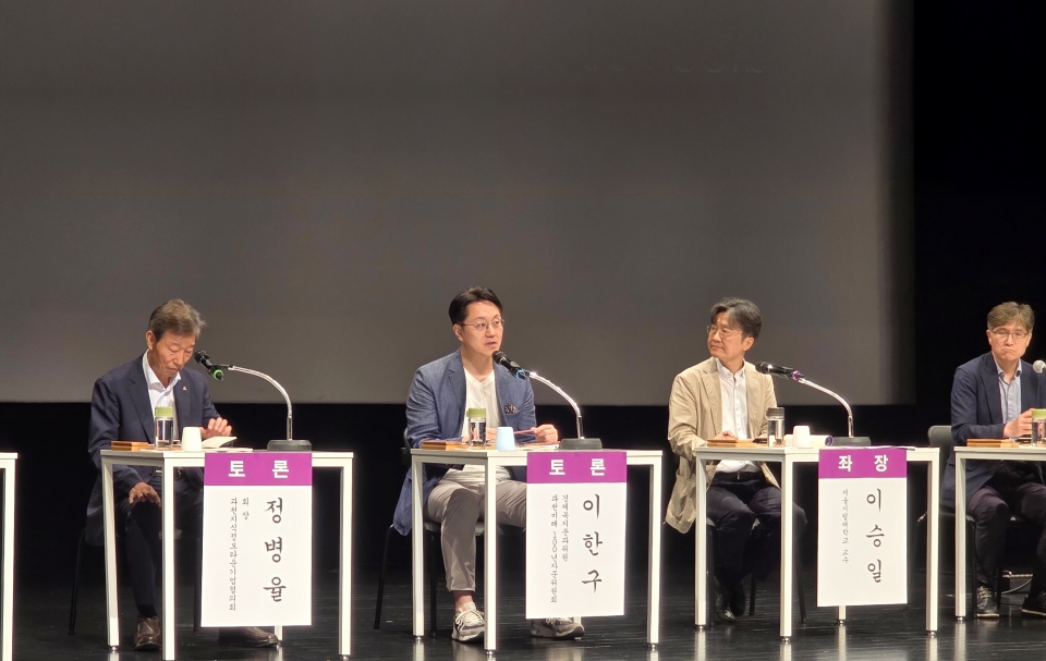 이승일 서울시립대 교수가 좌장을 맡은 종합 토론에는 정병율 과천지식정보타운기업협의회 회장, 이한구 과천미래100년자문위원회 위원, 박호동 과천도시공사 처장, 김동근 한국도시계획가협회 부회장, 이상욱 과천시 지역경제과장이 패널로 참여해 구체적인 전략과 실천 방안을 논의했다.