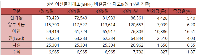[표] 상하이선물거래소 재고(8월 15일)