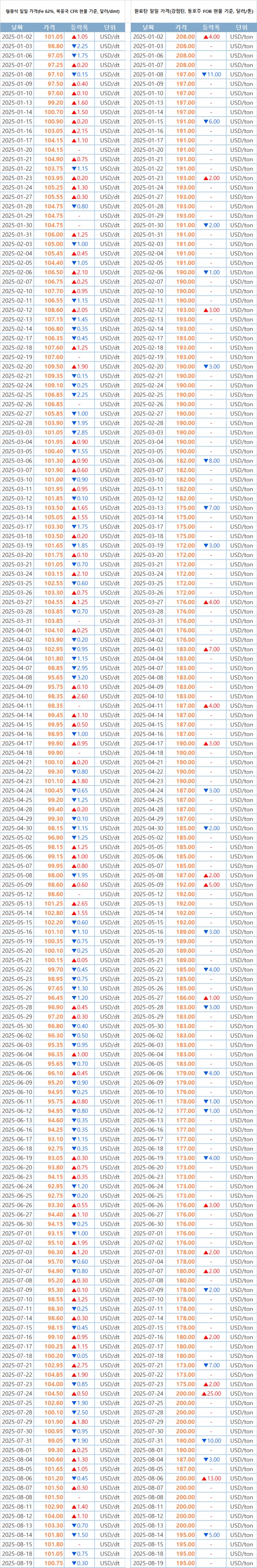 키워드 #철광석 #원료탄 이사무엘 기자 smlee@snmnews.com 다른 기사 보기 관련기사 500년 만의 귀향…조선 서화, 포스코미술관서 첫 빛 본다 일본제철 기미쓰, 넉 달 만에 철스크랩價 인상 철강·조선·차·건설·기계協, ‘1년’만에 국회서 노란봉투법 반대결의 저탄소&친환경 철강 심포지엄 ‘COOLIT 2025’, 24일부터 포스코센터서 열려 감동의 무대 열린다…포스코 포항제철소, 지역민과 함께하는 ‘사랑해 엄마’ 韓, 美 전기요금 관세 논리 또 꺾었다…일반 후판 소송서 2차 승소 탄소감축 투자 기업에 1,000억 원 추가 지원…최대 500억 장기 저리 융자 저작권자 © 철강금속신문 무단전재 및 재배포 금지