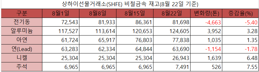 [표] 상하이선물거래소 재고(8월 22일)