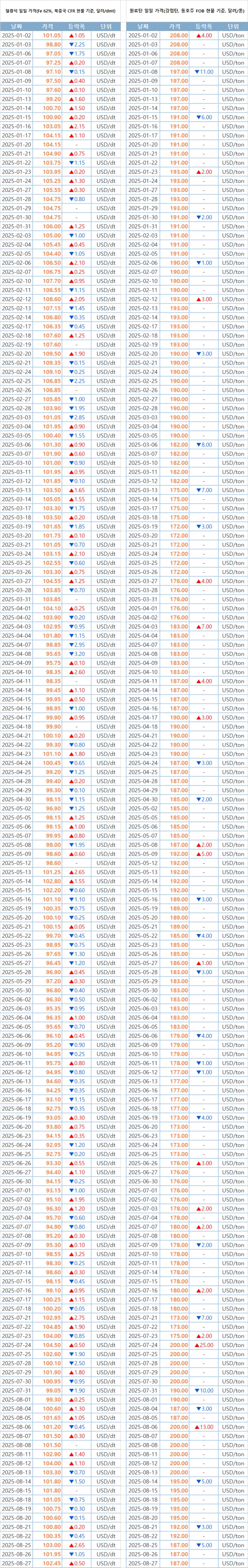 키워드 #철광석 #원료탄 이사무엘 기자 smlee@snmnews.com 다른 기사 보기 관련기사 한미 조선동맹, 산업·안보로 확장…HD현대·한화오션·삼성重 대미 투자 가속 GS엔텍-울산시, 3,000억 규모 해상풍력 설비 투자 협약 인도, '기업 규모 막론' 도금강판 생산능력 강화 현대제철, 9월부터 유통향 철근 사전주문제로 운영한다 AI로 세상을 바꾸는 청소년들의 꿈, 포스코DX와 함께 실현해요 HD현대중공업-HD현대미포 합병…초격차 확보해 K-조선·방산 키운다 정부, 中 후판에 최대 34.1% 반덤핑 관세…9개 수출자 ‘가격약속’ 수용 포항, 철강 공급과잉에 ‘산업위기선제대응지역’ 지정 [단독] 인니산 둔갑한 中 후판, 슬래브도 국적 바꿔치기 [주간시장동향-후판] 中 후판 반덤핑 최종 판정…9월 반등 기대 저작권자 © 철강금속신문 무단전재 및 재배포 금지