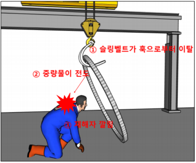 슬링벨트에 걸린 중량물 이탈로 깔림