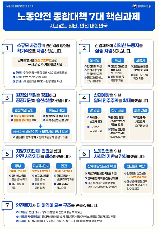 소규모 사업장 지원 확대·안전 파파라치·작업중지권 확대·외국인비자 등 종합안 담겨
