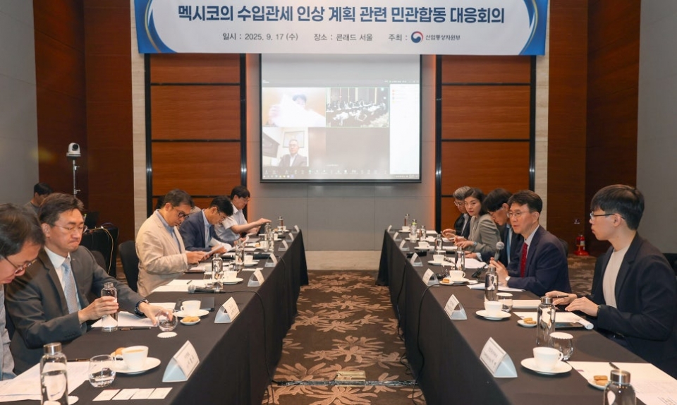 17일, 산업부는 서울 콘래드호텔에서 산업부 통상차관부, 중남미대양주통상팀, 인도태평양통상기획팀, 주멕시코대사, 철강·자동차·가전 업체 및 관련 협회, 코트라, 대한상의 등이 참석한 ‘멕시코 수입관세 인상 계획 관련 민·관 합동 대응회의’를 열었다.