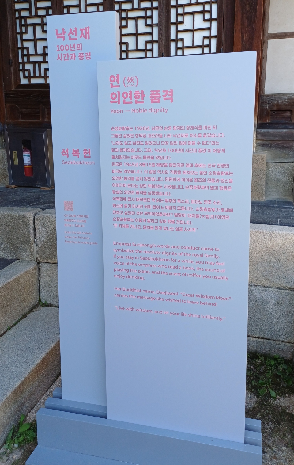 이 중 '낙선재 100년의 시간과 풍경'은 국가유산청 궁능유적본부가 주최하고 대한황실문화원과 국가유산진흥원이 공동 주관하는 행사로 대한제국, 일제강점기, 해방 등을 거친 지난 100년간의 근현대사에서 낙선재의 의미와 낙선재에 살았던 대한제국 황실 세 여인인 순정효황후, 의민황태자비(이방자 여사), 덕혜옹주의 삶과 정신을 조명한다.