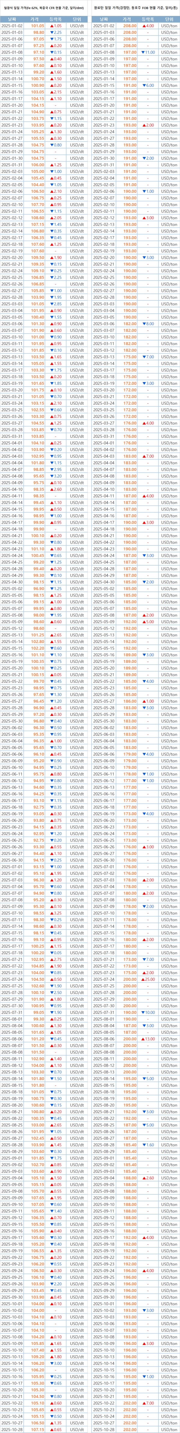 키워드 #철광석 #원료탄 이사무엘 기자 smlee@snmnews.com 다른 기사 보기 관련기사 “중·일 공백 노리는 동남아”…오퍼價는 낮추고, 시장 반응은 ‘관망’ “더는 버틸 여력 없다”…열연강판價, 4개월째 치솟는 쇳물값에 ‘인상 압박’ 배관용강관, 건축 수요 감소에 입찰 경쟁도 불붙어 포항·광양·당진 ‘철강도시’ 상공회의소, 정부에 철강업 위기 건의문 공동 건의 베트남, 중국산 열연강판 반덤핑 조치 우회 조사 시작 “조금씩 숨통 트였다”…포스코홀딩스, 철강·이차전지 모두 ‘손익 턴어라운드’ 조짐 저작권자 © 철강금속신문 무단전재 및 재배포 금지