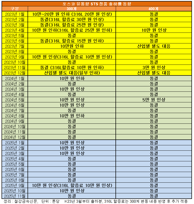 포스코, ‘11월’ STS 출하價 동결…300계 연속 인상 멈춰