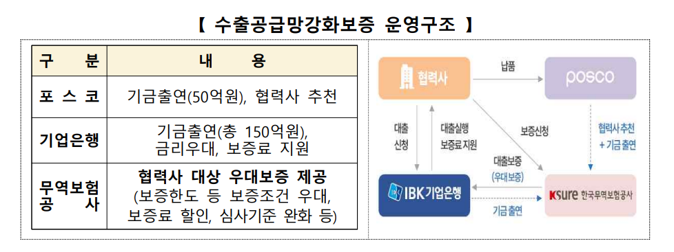정부는 미국의 50% 철강 관세와 유럽연합(EU)의 철강 저율관세할당(TRQ) 도입 검토 등 수출 장벽에 대응해 정부는 양자 간 공식·비공식 협의를 강화하고, 수출 기업 지원에도 나설 방침이다. 먼저, 철강 등 관세피해 기업을 대상으로 이미 발표된 이차보전사업, 긴급 저리융자 신설 등에 더하여 4,000억 원 규모의 수출공급망 강화보증을 추가로 신설하여 총 5,700억 원의 금융지원을 공급한다.