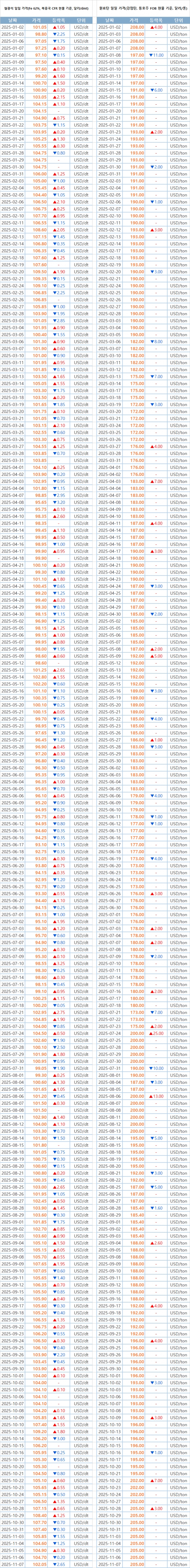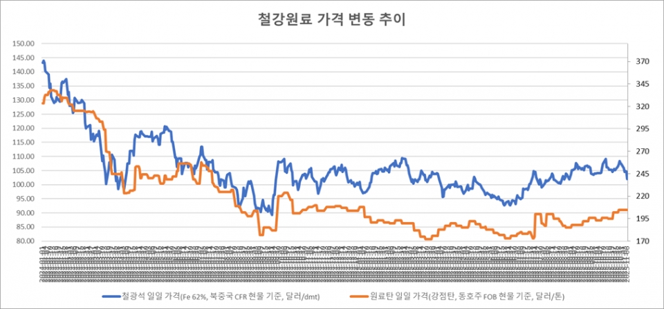[표] 일일 철강 원료 가격 동향(11월 7일)