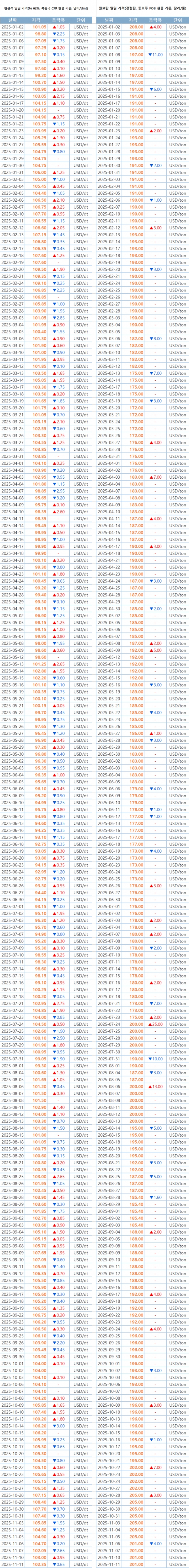 [표] 일일 철강 원료 가격 동향(11월 11일)