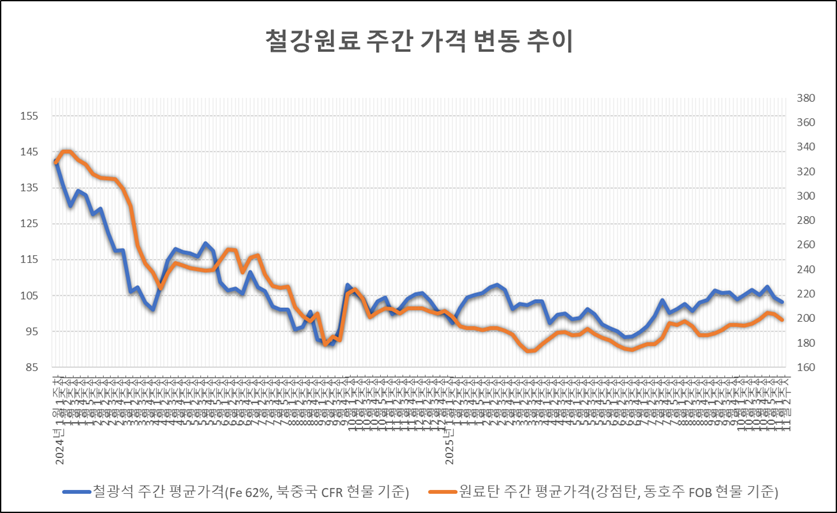 키워드 #철광석 #원료탄 이사무엘 기자 smlee@snmnews.com 다른 기사 보기 관련기사 동국제강, 소외계층 위한 '사랑의 김장 나누기' 행사 구조관, 수입 HR 반덤핑 부과에도 효과 미미 STS 강관 상장 3社, 시황 장기 부진에 수익성 관리 난항 후판 수입 구조 재편…“유통향 줄고 조선향 유지” 이원화 구조 본격화 수소·CCUS·친환경 인증…철강, ‘그린 전환’ 속도 올린다 철강協·POMIA, 포항지역 '철강산업 디지털전환 전문인력 양성' 교육 무료 운영 헌혈 21년째…현대제철 당진제철소, 지역 생명공급망 지킨다 [SMK] 포스코, SMK 현장서 ‘미래형 철강 패키지’ 공개…에너지·모빌리티·산업강재 전면 배치 현대제철, 글로벌 차체 기술 무대서 ‘3세대 강판’ 존재감 드러냈다 저작권자 © 철강금속신문 무단전재 및 재배포 금지