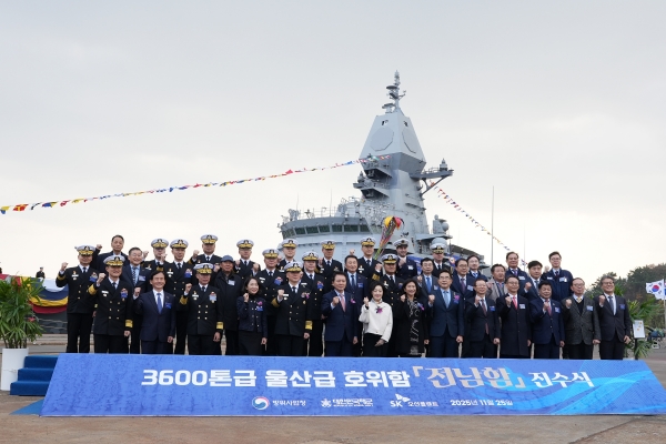 이승철 SK오션플랜트 대표이사는 “오늘 진수된 전남함은 반세기를 뛰어넘는 전통과 영예로운 역사를 계승한 함정이다. 1960년대부터 대한민국 해군과 함께 바다를 지켜온 전남함의 이름이, 이제 최첨단 기술로 다시 탄생하게 돼 더욱 뜻 깊다”며 “우리 SK오션플랜트는 이러한 역사적 의미를 깊이 새기며, 완벽한 품질과 안정적인 납기를 통해 국가 방위역량 강화에 기여 하겠다. 앞으로도 대한민국 해군의 든든한 동반자로서 해양안보 수호와 방산산업 발전에 최선을 다하겠다”고 힘줘 말했다.