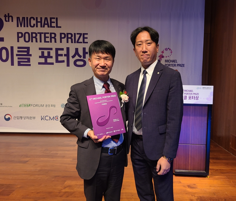 포스코 포항제철소 주요 파트너사 파인스(대표 민중기)가 지난 4일 서울 중구 신라호텔에서 열린 '제12회 마이클 포터상' 시상식에서 ESG 조직문화(언어) 부문 우수성을 인정받아 마이클 포터상을 수상했다고 8일 밝혔다.