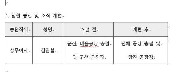 강관 제조업체 휴스틸(대표 박훈)이 2026년 임원 승진 인사 및 공장 부문 보직 변경을 단행했다. 내용은 다음과 같다. 박재철 기자 parkjc@snmnews.com 다른 기사 보기 관련기사 유정용강관, 美 고관세에 수출 물량 '뚝' 국토부 모듈러 건축 특별법 제정 추진에 강관사 '맑음' 배관용강관, 제품 생산부터 소재 매입 최소화 中, 내년 1월부터 철강 수출 허가제 시행 전남도 전국 최대 스마트팜 구축에 농원용강관 수요↑ 저작권자 © 철강금속신문 무단전재 및 재배포 금지