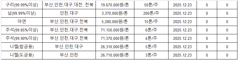 *재고량 소진에 따른 알루미늄 상시 방출 중단(~25/12/24)