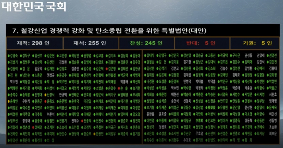 다만 업계에서는 이번 법안에 대해 실효성이 부족하단 비판이 잇따르고 있다. 철강업계가 생존을 위한 필수 조건이라며 요구해온 산업용 전기요금 인하 등은 배제한 채 법 절반이 미래 탈탄소 내용으로 채워졌다는 지적이다.