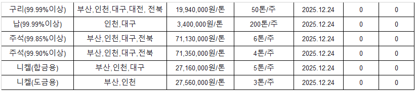 *재고량 소진에 따른 알루미늄, 아연 상시 방출 중단(~25/12/24) 김영은 기자 yekim@snmnews.com 다른 기사 보기 저작권자 © 철강금속신문 무단전재 및 재배포 금지