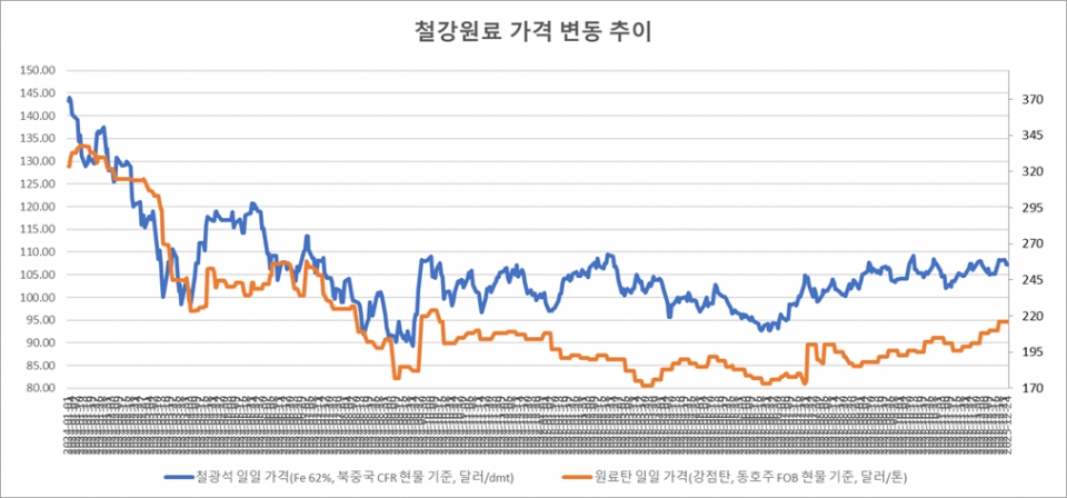 [표] 일일 철강 원료 가격 동향(12월 25일)