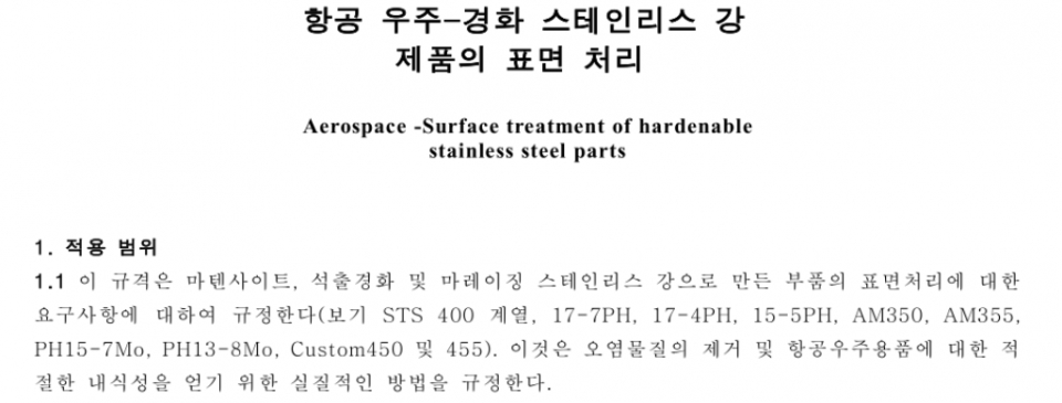 국가기술표원이 항공 우주분야에 적용되는 스테인리스강 제품 표면 처리 관련 한국산업표준(KS)을 정리했다. 기존 ‘KS W 1128’ 표준이 폐지되고 지난 10월 제정 예고한 ‘KS W NEW 2025 0667’이 ‘KS W ISO 8075’로 정식 표준번호로 매겨져 대체 표준으로 사용된다.