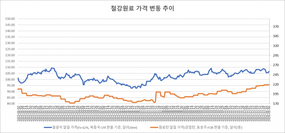 [표] 일일 철강 원료 가격 동향(1월 6일)