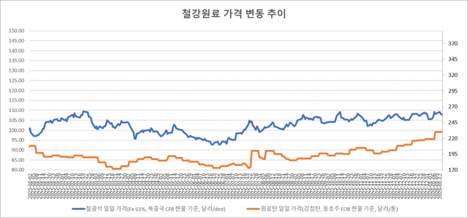 [표] 일일 철강 원료 가격 동향(1월 14일)