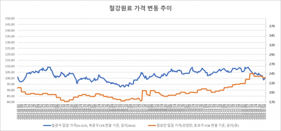 키워드 #철광석 #제철용 원료탄 이사무엘 기자 smlee@snmnews.com 다른 기사 보기 관련기사 2월 둘째 주, 국내 철스크랩價 하락 산업용 전기료 개편, 할증 우려 '골머리' 세아베스틸지주, 고부가제품 비중 확대로 2025년 영업이익 95.6% 급증 세아베스틸, 설명절 맞아 군산시 저소득 세대에 백미 10kg 570포 기탁 (특수강봉강) 제조업 반등·원료價 상승에 일부 제품價 ‘상승’ (선재) 전방산업 회복에도 수입 증가에 제품價 ‘동결’ 현대스틸파이프, 인스타그램 개설…“딱딱한 철강 이미지 벗고 고객 곁으로” [오늘 중국은] 춘절 앞둔 중국 철강價, 4주 연속 하락 [열연강판] 설 이후 상승장 이어갈까 [후판] 인상분 반영 국면 주목 소부장 R&D 1.29조 투입…초저온·내부식 등 고성능 철강소재 개발 포함 저작권자 © 철강금속신문 무단전재 및 재배포 금지