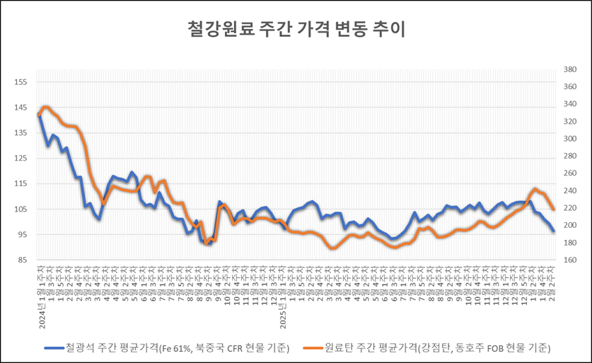 키워드 #철광석 #제철용 원료탄 이사무엘 기자 smlee@snmnews.com 다른 기사 보기 관련기사 열연강판 반덤핑 최종 판정, ‘가격약속 81%’의 의미 파스너조합, ‘2026년도 제19회 정기총회’ 개최 (특수강봉강) 제조업 호조·원료價 상승에 일부 제품價 ‘상승’ (선재) 제조업 반등에도 수입 증가에 제품價 ‘약세’ 日·中 열연강판에 최대 33%대 관세 건의…가격 인상 약속 병행 "SK오션플랜트, 매각 불확실성 해소시 호재 부각" “조선 웃는데 후판 제자리”…엇갈린 슈퍼사이클 열연강판 유통가격 상승 흐름…제조원가는 2월 소폭 조정 [열연강판] 명절 이후 ‘안정 속 진단’…3월 시황 흐름은? [후판] 유통價 ‘견조’…추가 상승 가능성 주목 동남아 전진기지 점검…포스코 장인화 회장, 완결형 현지화 실행력 주문 [분석] 국산 열연 ‘100만톤’ 확대 전망 던진 무역위…열연강판 수입 감소 폭은 얼마? 日 반덤핑 우회방지 도입 땐…韓 철강 영향 받을 품목은? 저작권자 © 철강금속신문 무단전재 및 재배포 금지