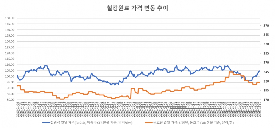키워드 #철광석 #제철용 원료탄 이사무엘 기자 smlee@snmnews.com 다른 기사 보기 관련기사 현대제철, “철강 업황 바닥 통과”…밸류에이션 정상화 기대 튀르키예 철스크랩 시장 불확실성 지속 올해도 브라질 선철 수출 '견조' 수입재 잠식·제조 기반 붕괴에 2025년 합금철 생산 30만 톤 ‘미달’ 중소기업계 “시대착오적 임원 연임 제한 규정 즉각 폐지” 국회 촉구 원강, 튀르키예 파트너사 초청 공장 방문 동국씨엠, 24일 정기주총…전자투표·QR 위임 도입 등 주주친화 노력 동국제강, 3월 23일 정기주총…재경실장 권주혁 사내이사 선임 안건 [오늘 중국은] 바오산강철, 4월 판매價 톤당 200위안 인상 포항제철소 중앙수리섹션 혁신공장 완료…설비강건화·안전 개선 광양제철소, 사내어학 프로그램 확대…직원 글로벌 역량 강화 후판 수입 증가…월별 변동 흐름 지속 저작권자 © 철강금속신문 무단전재 및 재배포 금지