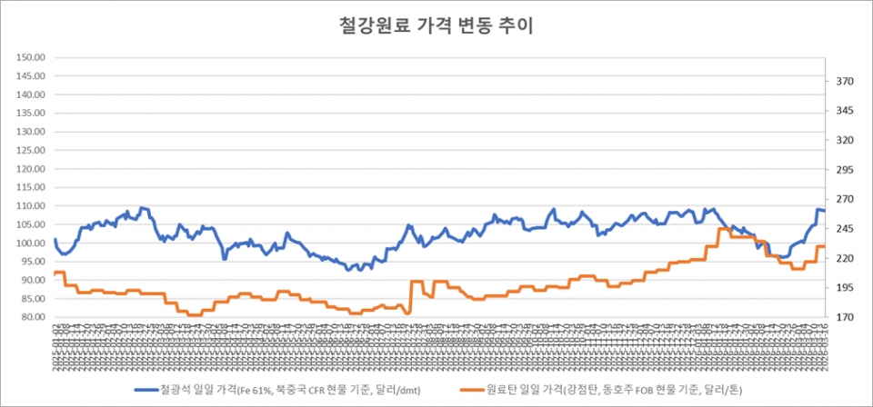 [표] 일일 철강 원료 가격 동향(3월 16일)