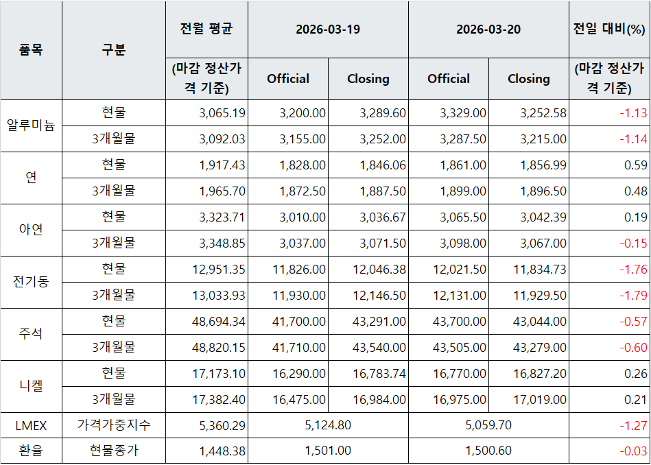 김영은 기자 yekim@snmnews.com 다른 기사 보기 관련기사 [표] LME 비철금속 및 환율 동향(3월 23일) [표] LME 비철금속 및 환율 동향(3월 24일) 저작권자 © 철강금속신문 무단전재 및 재배포 금지
