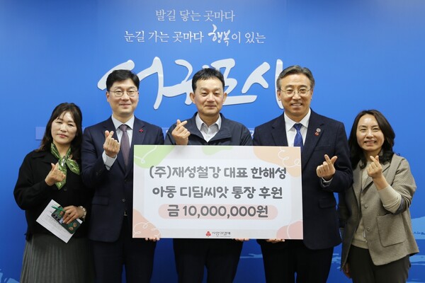 이번 성금은 재성철강 한해성 대표가 지역사회 나눔 실천의 일환으로 마련한 것으로, 서귀포시 관내 경제적으로 어려운 아동들의 자립 기반 마련을 위한 디딤씨앗통장 지원에 사용될 예정이다.