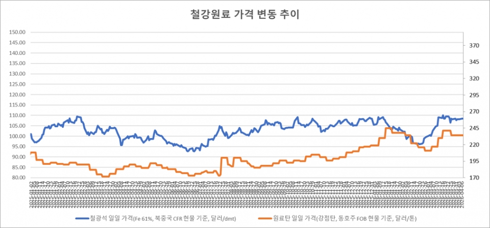 키워드 #철광석 #제철용 원료탄 이사무엘 기자 smlee@snmnews.com 다른 기사 보기 관련기사 현대제철, 당진 #1 CVGL 합리화 완료... “글로벌 車강판 경쟁력 강화” 포스코, ‘위험 외주화’ 끊는다…조업지원 인력 7천 명 직고용 발표 “2025~2033년 세계 파스너 시장 연평균 4.7% 성장” 중기중앙회-이상네트웍스, ‘中企·소상공인 금융지원’ MOU 체결 포스코, 협력사 7,000명 직고용 결정…대규모 인력 흡수 포스코·현대제철 노조, 포항서 ‘철강 지원’ 공동 결의 후판 비중 10%대로 하락…선박 원가 ‘기자재·시스템’ 중심 이동 수소환원제철 30만 톤 실증 착수…‘그린 철강’ 전환 시계 본격 가동 포스코·현대제철 1분기 실적 반등 진입…판가 인상 효과 본격 반영 저작권자 © 철강금속신문 무단전재 및 재배포 금지