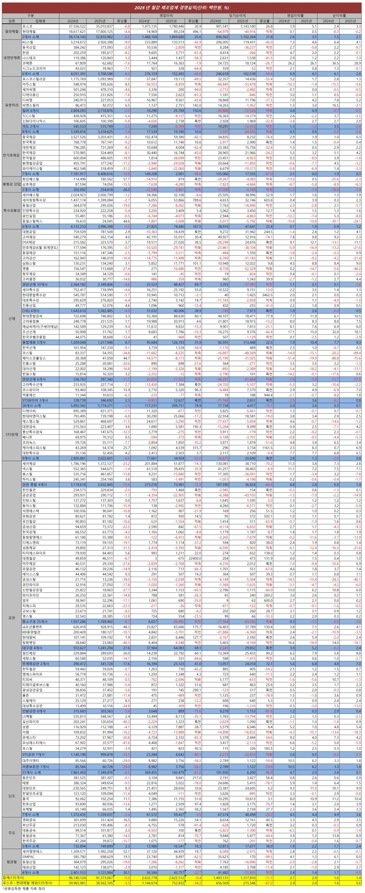 미국발 보호무역주의 확산에 따른 관세 영향과 내수 경기 침체가 맞물리면서 외형 성장과 수익성 구현에 심각한 어려움을 겪은 것으로 분석된다.