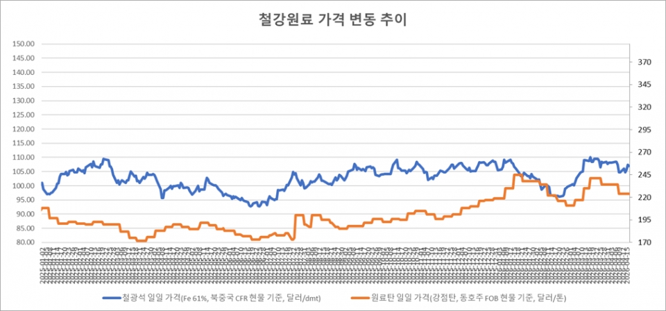 [표] 일일 철강 원료 가격 동향(4월 17일)