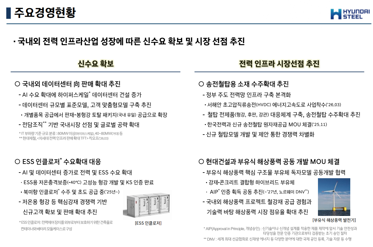 [현대제철 IR] 주요경영현황 ‘AI 데이터센터·해상풍력’ 신수요 정조준