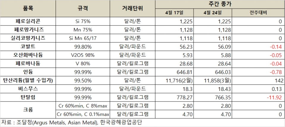 김영은 기자 yekim@snmnews.com 다른 기사 보기 관련기사 [표] 희유금속 가격 동향(4월 17일) [표] 희유금속 가격 동향(4월 10일) 저작권자 © 철강금속신문 무단전재 및 재배포 금지