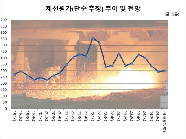 지난 2021년 1분기 이후 제선원가는 줄곧 300달러를 웃돌았다. 특히 코로나19 팬데믹으로 세계 물동량이 얼어붙으며 제선원가는 급격하게 올랐다. 이에 2022년 1분기 제선원가는 톤당 560달러에 육박하기도 했다.