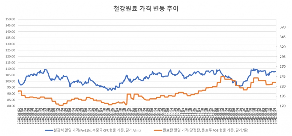 [표] 일일 철강 원료 가격 동향(4월 27일)